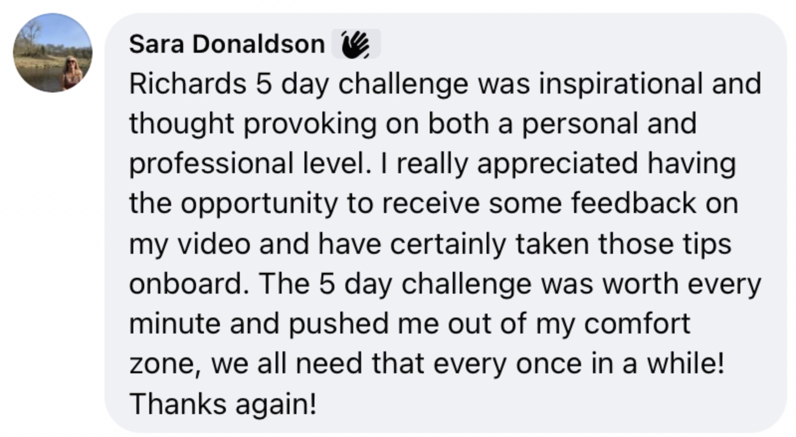 “FREE 5 day challenge reveals how professionals can start to gain the influence, credIbility and financial results through compelling storytelling”
